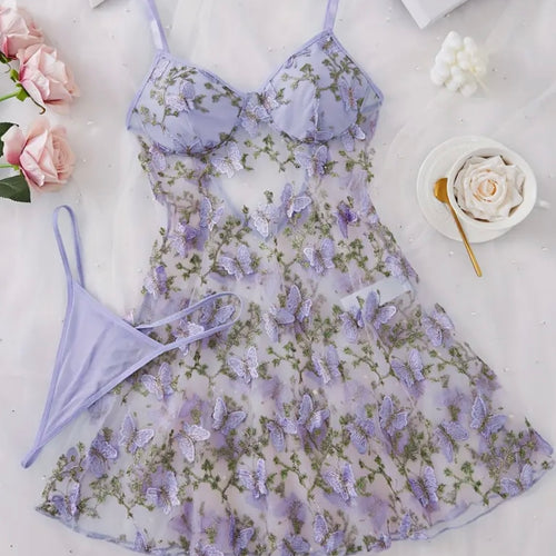 Elara Mesh Floral Baby Doll Sleepwear - Burgundy