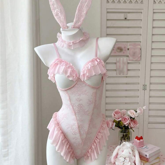 Bunny Lace Bodysuit - Pink