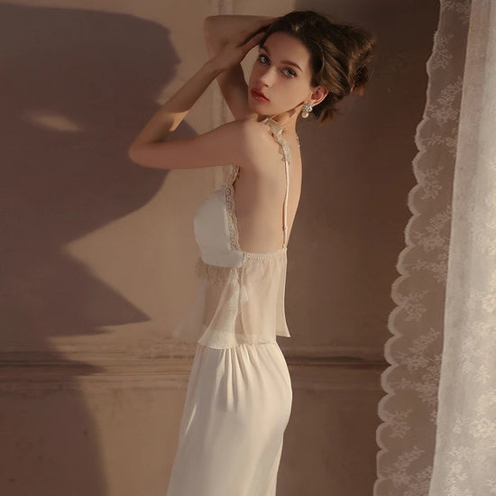 Vespera Silk Lace Floral Sleepwear + Robe - Champagne