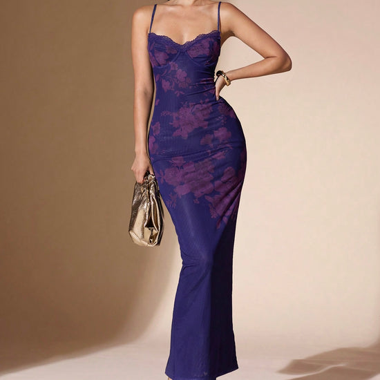 Sapphire Floral Violet Mesh Dress - Violet | Sunny Bright