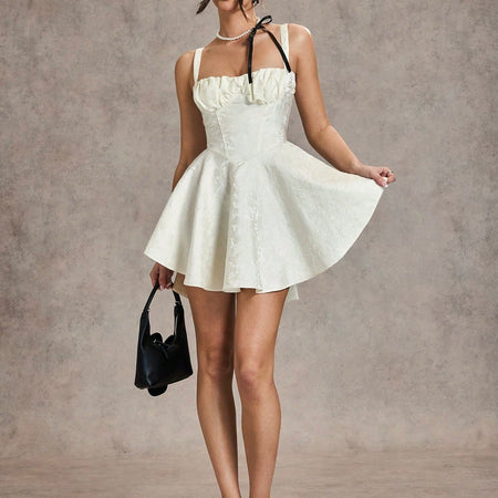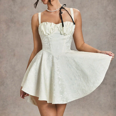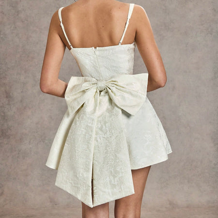 Silva Pattern Back Ribbon Mini Dress - Ivory