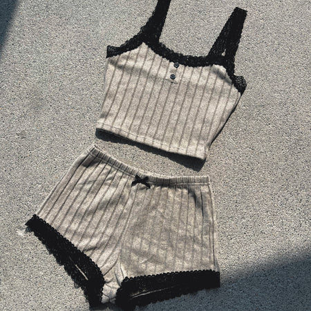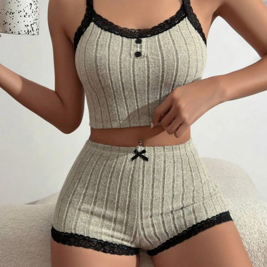 Sabrina Knitted Lace Pajamas Set - Mauve