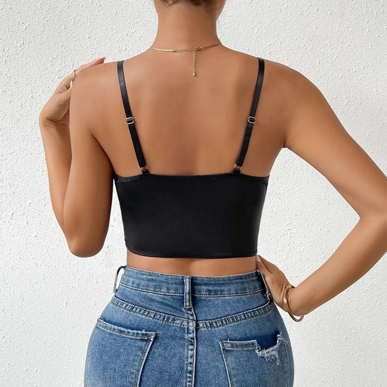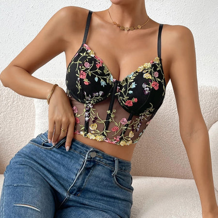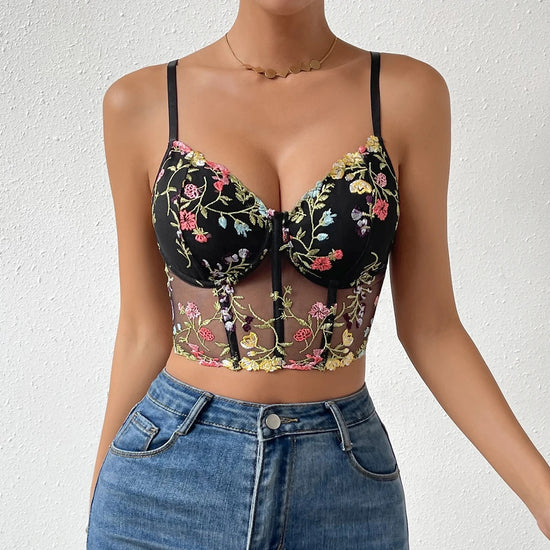 Rosalie Silk Embroidery Mesh Bustier - Black