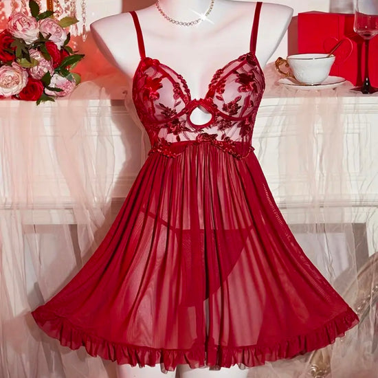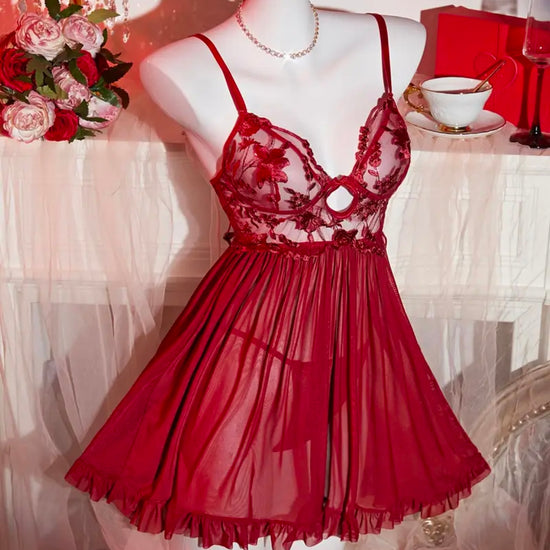 Kessie Mesh Sleepwear - Deep Red