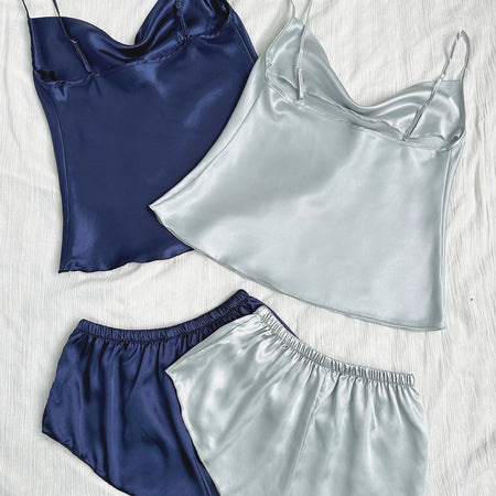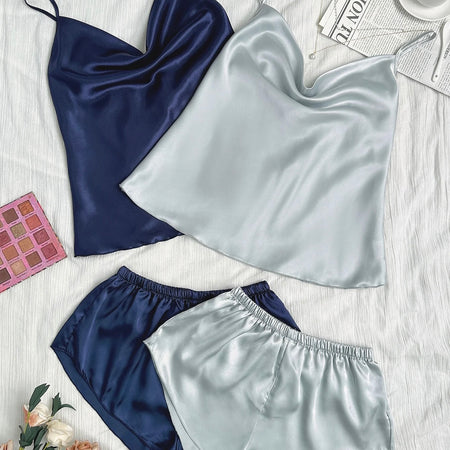 Kira Basic Silk Pajamas Set 2 Piece - Navy & Sage