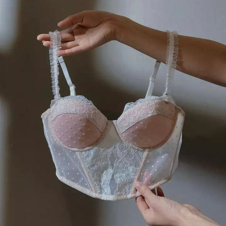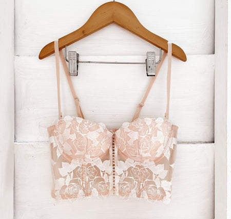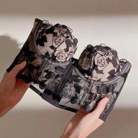 Rosalie Silk Embroidery Mesh Bustier - Black