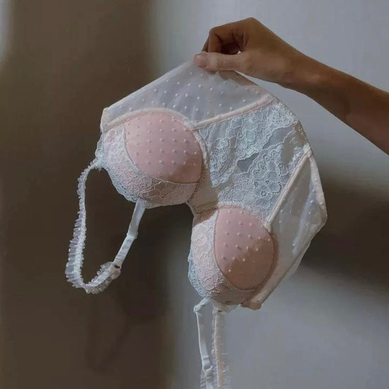 This step measures your bust, or cup size. Hold the end of the tape measure at the centre again but this time around the fullest part of your chest. Don’t pull too tight! Just secure enough that it doesn’t droop. Write down this measurement too