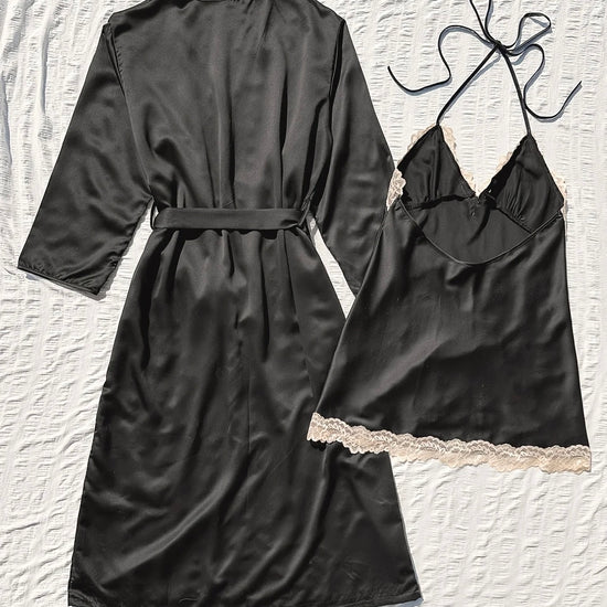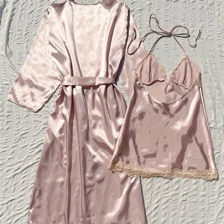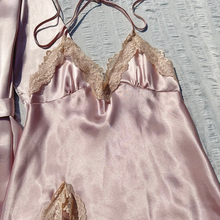 New Alya Pastel Silk Sleepwear + Robe - Pink