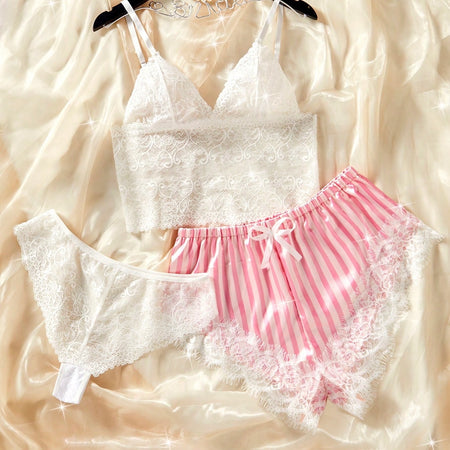New Victoria Stripes Pajamas Set - Pink & White | Sunny Bright