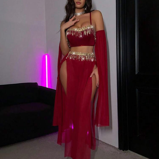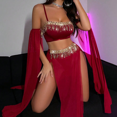 Queen Of Persia Mesh Sparkly Tassle Costume - Burgundy