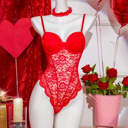 Sapphira Lace Bodysuit - Red | Sunny Bright