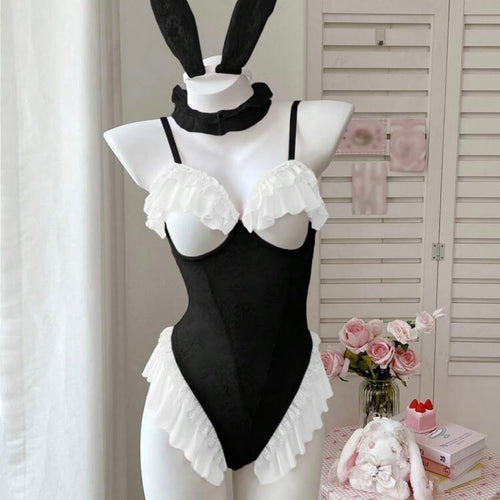 Cassia Bunny Bodysuit Suspender Set - Pink