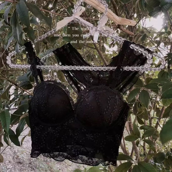 Rosalie Silk Embroidery Mesh Bustier - Black