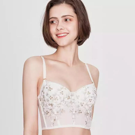 Rosalie Silk Embroidery Mesh Bustier - White
