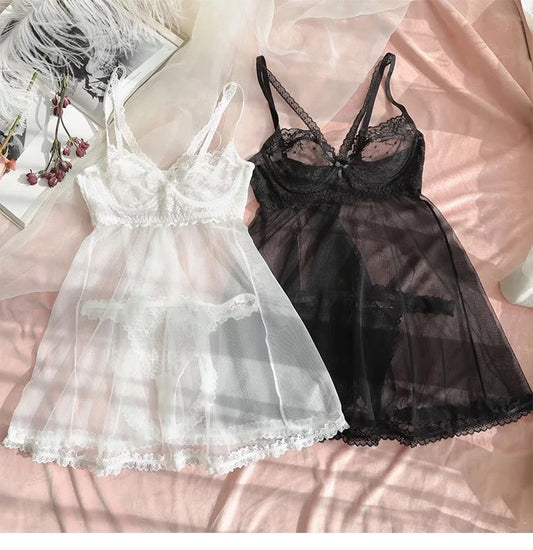 Lisa Mesh Lace Sleepwear - White | Sunny Bright