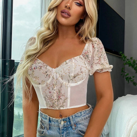 Live In Vintage Mesh Bustier - White | Sunny Bright