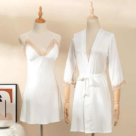 Meldy Silk Lace Robe Pajamas Set - Bronze