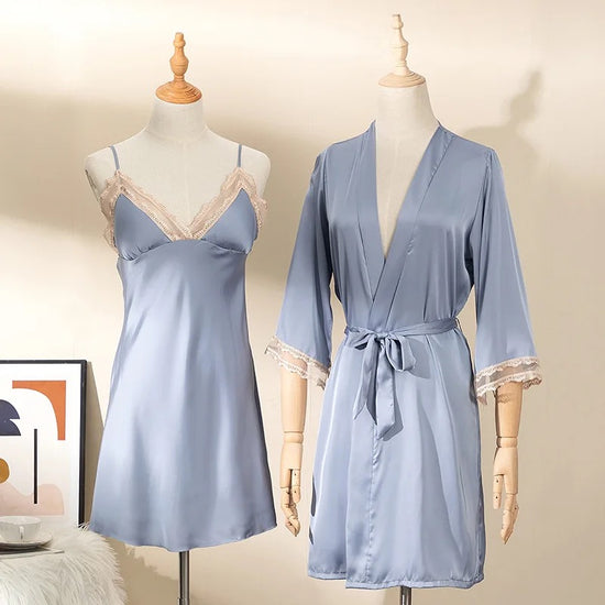 Christy Silk Sleepwear + Robe - Dusty Blue