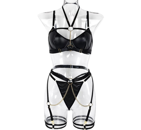 Aurallie 3 Piece Choker Lingerie - Burgundy