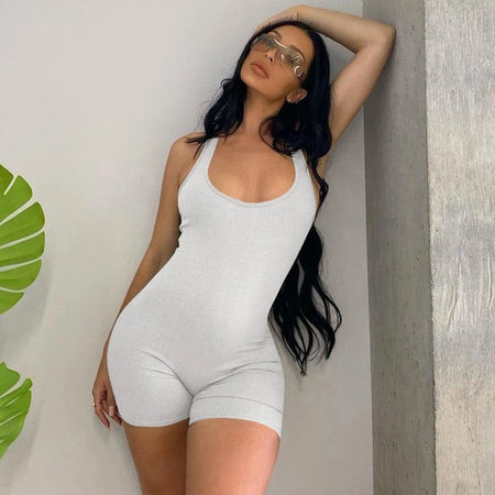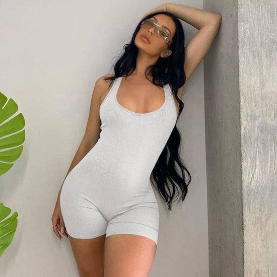 The Knit Minimal Jumpsuit - White | Sunny Bright