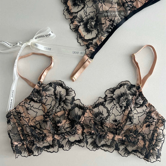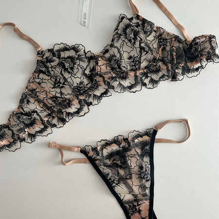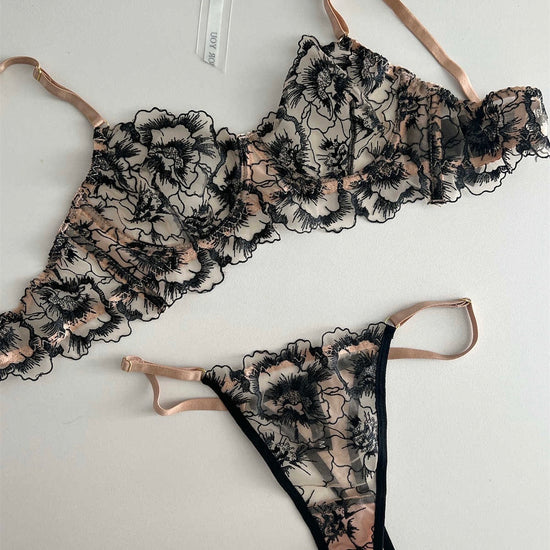 Bellaze Embroidery Two Piece Lingerie - Black Champagne | Sunny Bright
