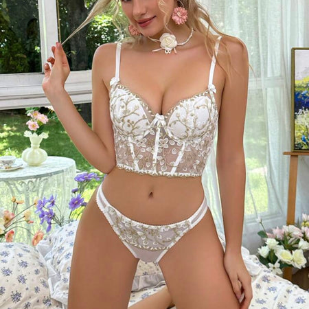 Clarity Embroidery Bustier Intimate Set - White | Sunny Bright