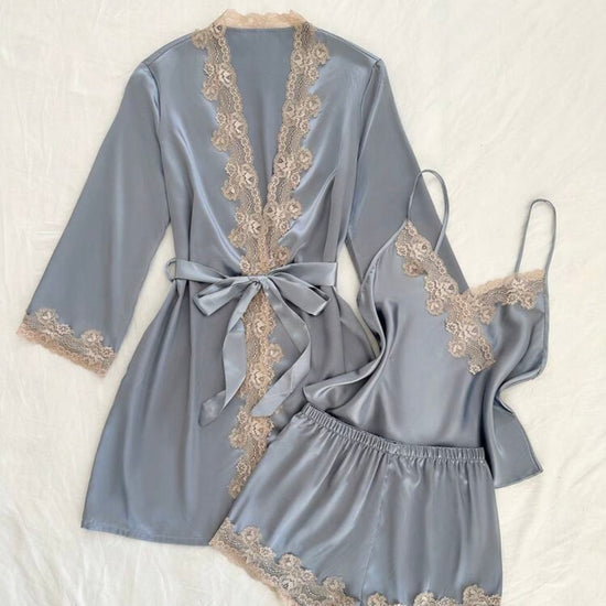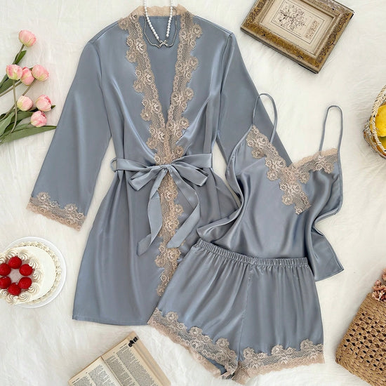 Meldy Silk Lace Robe Pajamas Set - Bronze