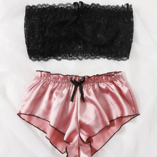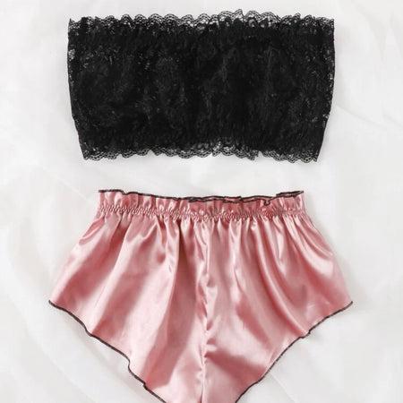 Kia Lace + Silk Pajamas - Black & Pink | Sunny Bright
