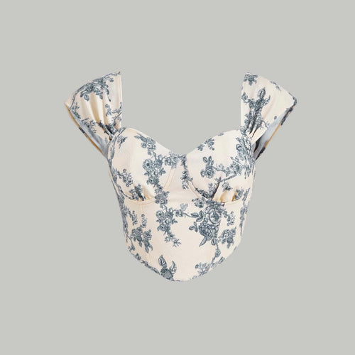 Rosalie Silk Embroidery Mesh Bustier - Black