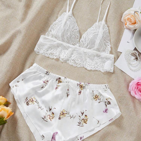 Miya Lace Silk Pajamas - White | Sunny Bright