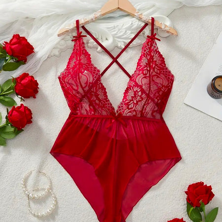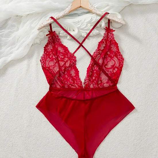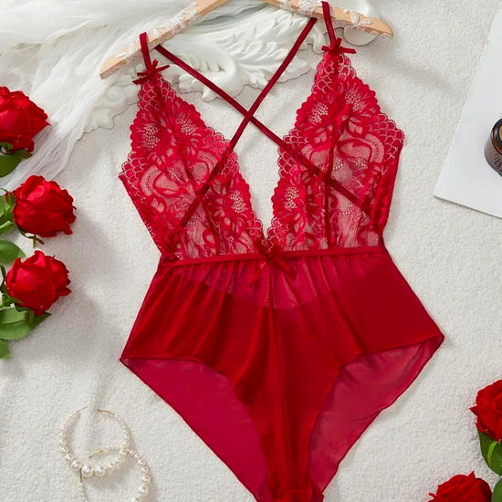 Roze Mesh Lace Bodysuit - Wine Red | Sunny Bright