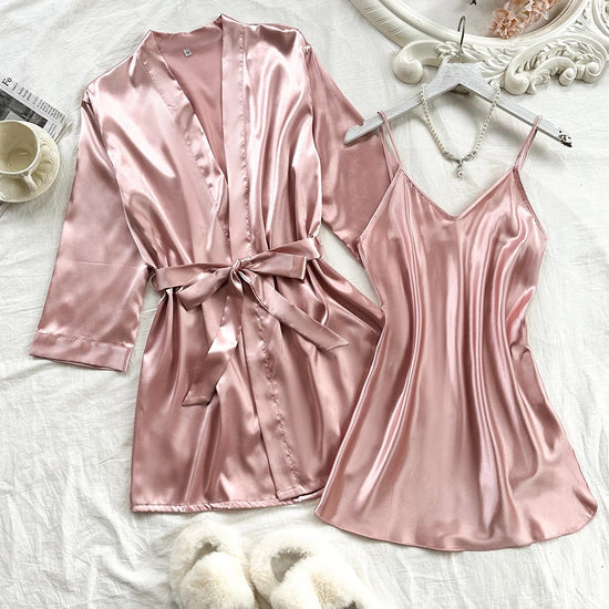 Seraphina Silk Sleepwear + Robe - Dusty Rose | Sunny Bright