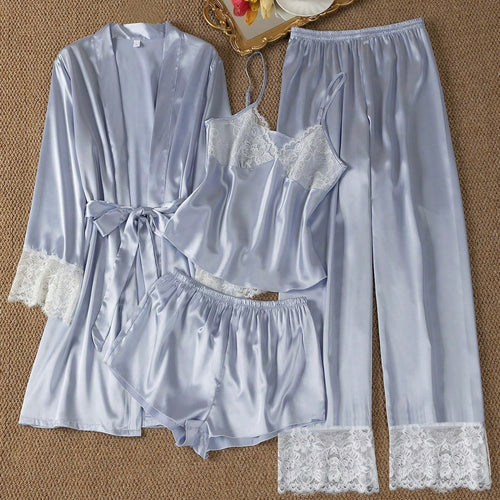 Azure Silk Lace 4 Piece Pajamas Set - Camouflage Green