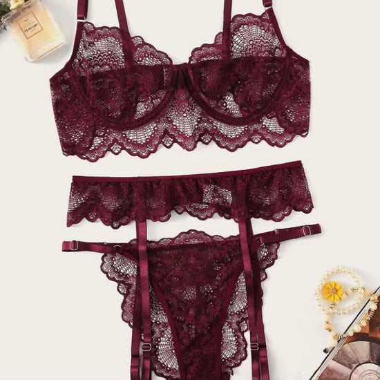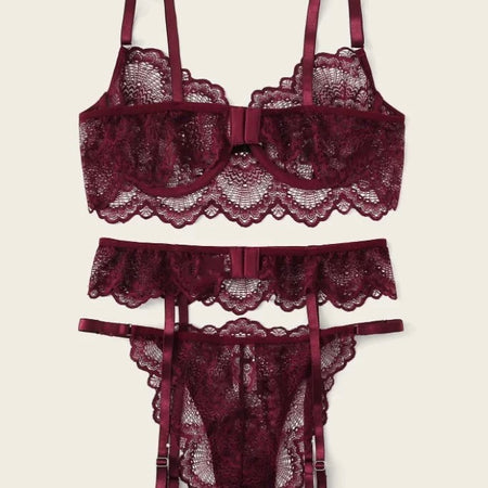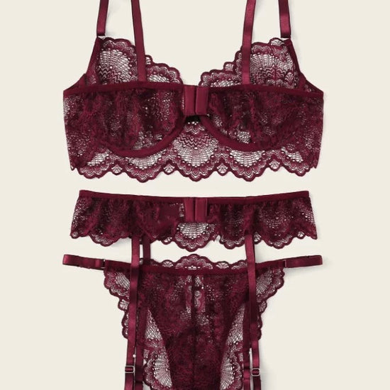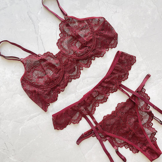 Aurallie 3 Piece Choker Lingerie - Burgundy