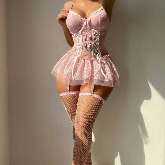 Jazmine Mesh Dots Suspender Skirt + Stocking - Dusty Pink