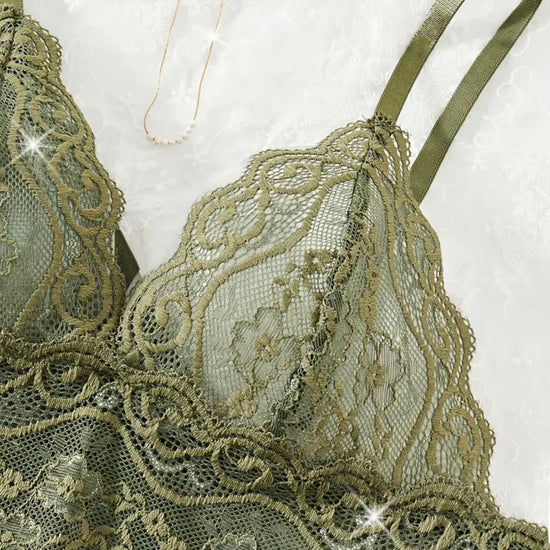 Azure Silk Lace 4 Piece Pajamas Set - Camouflage Green