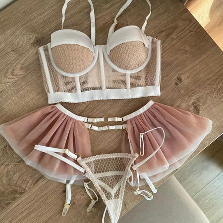 Sugar Baby Doll Bustier Intimate Set + Stocking - Pink