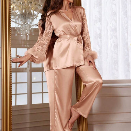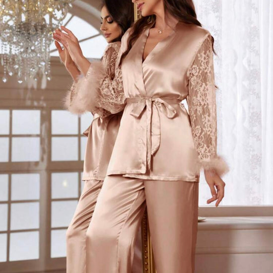 Meldy Silk Lace Robe Pajamas Set - Bronze