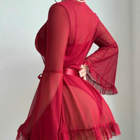 Tuvalu Lace Bodysuit + Robe - Red | Sunny Bright