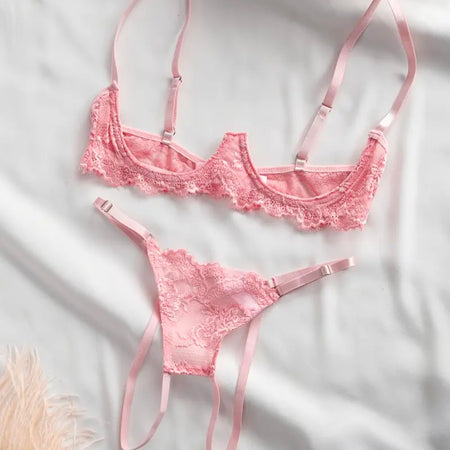 Amira Open Crotch Lingerie Set - Baby Pink | Sunny Bright