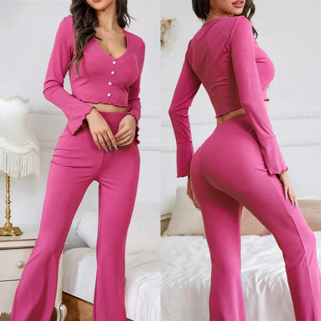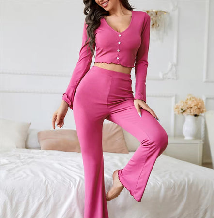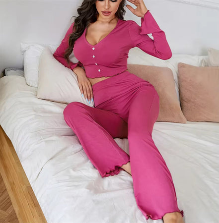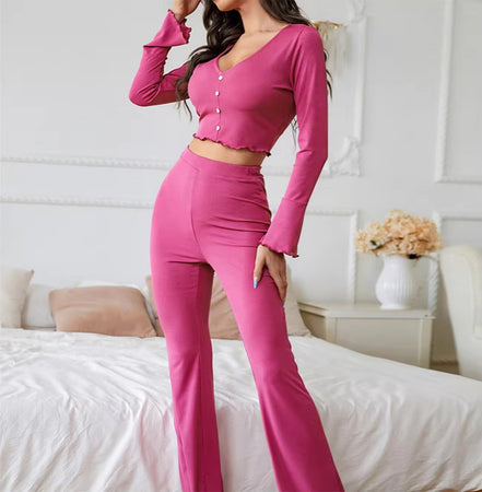 Aubree Two Piece Long Sleeve Pajamas - Fuchsia