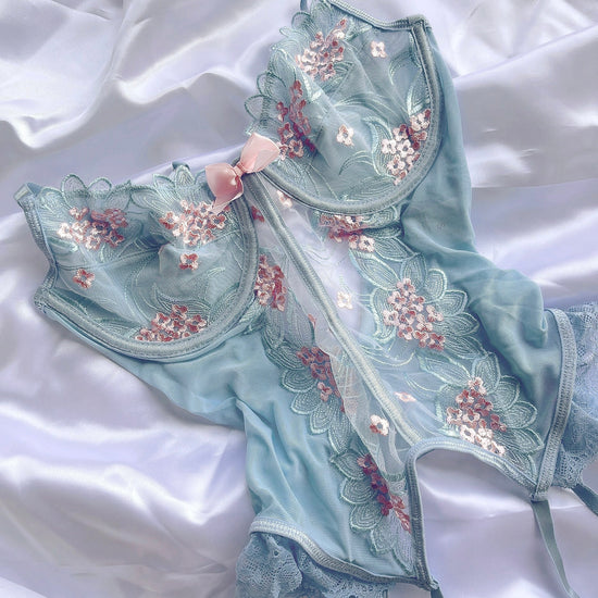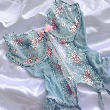 Azeera Embroidery Bustier Intimate - Baby Blue | Sunny Bright