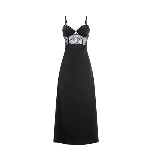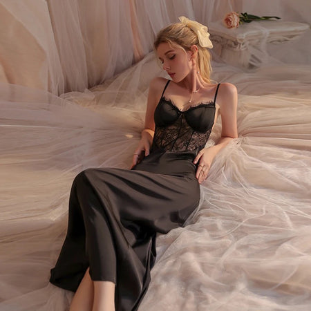 Baiana Silk Lace Long Sleepwear - Black