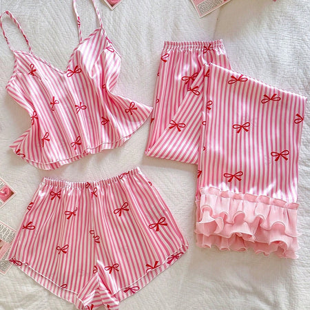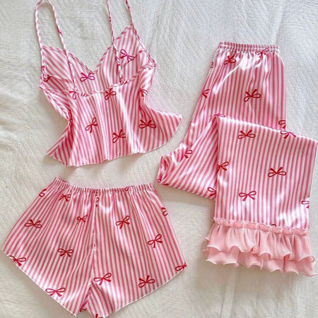 Bailey Ribbon Silk 3 Packs Pajamas - Pink