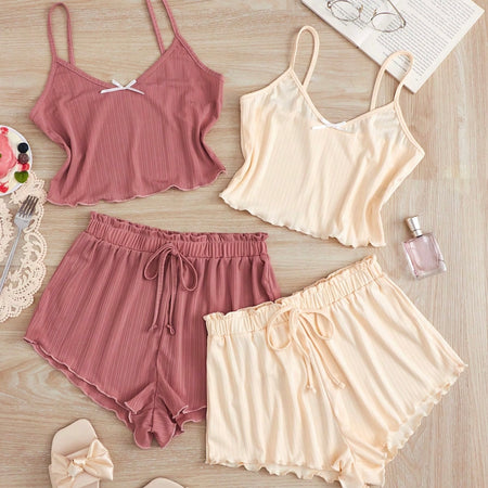 Mini Ribbon Two Piece Pajamas Set - White