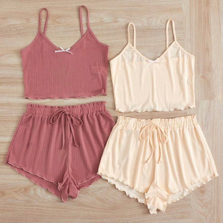 Billie Knit Pajamas 2 Packs Set - Cameo Brown & Apricot