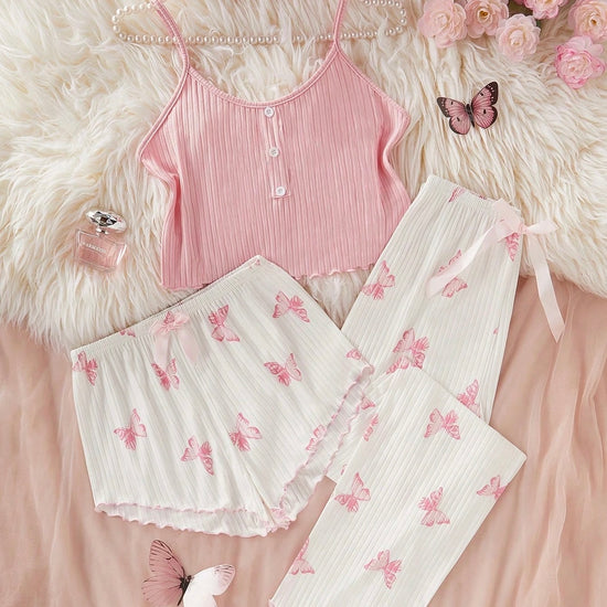 Butterfly 3 Packs Knit Pajamas - Pink | Sunny Bright