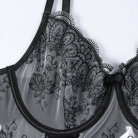 Cassia Embroidery Bustier Intimate + Stocking - Black