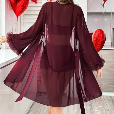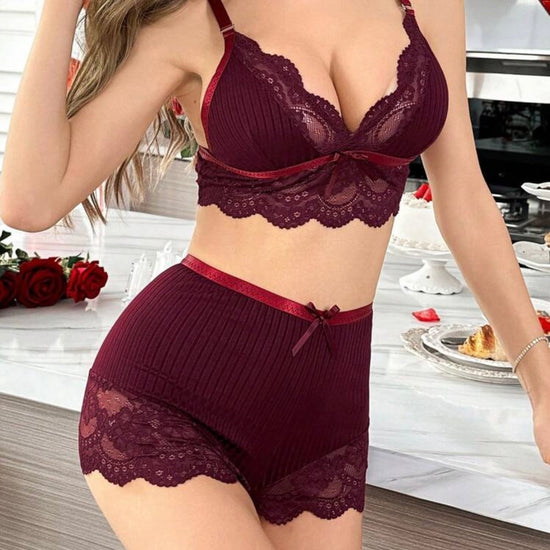 Aurallie 3 Piece Choker Lingerie - Burgundy