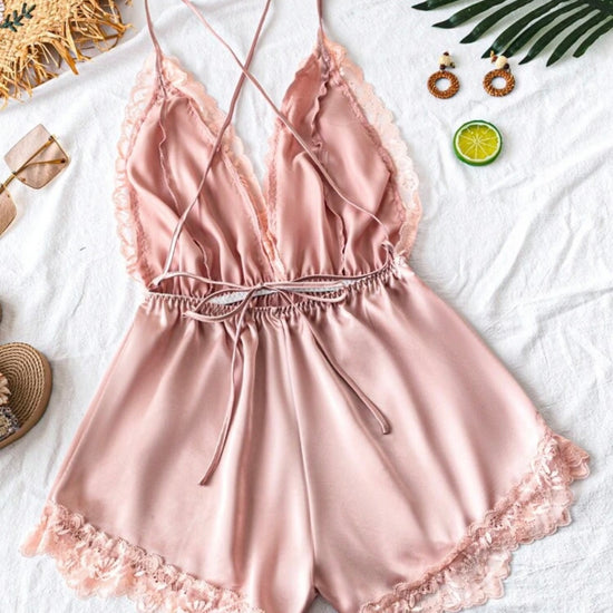 Estelle Satin Silk Jumpsuit - Baby Pink | Sunny Bright